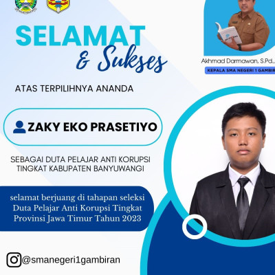 Semoga Duta SMAN 1 Gambiran, meraih juara, serta mampu menjadi penggerak gerakan antikorupsi di masa yang akan datang.